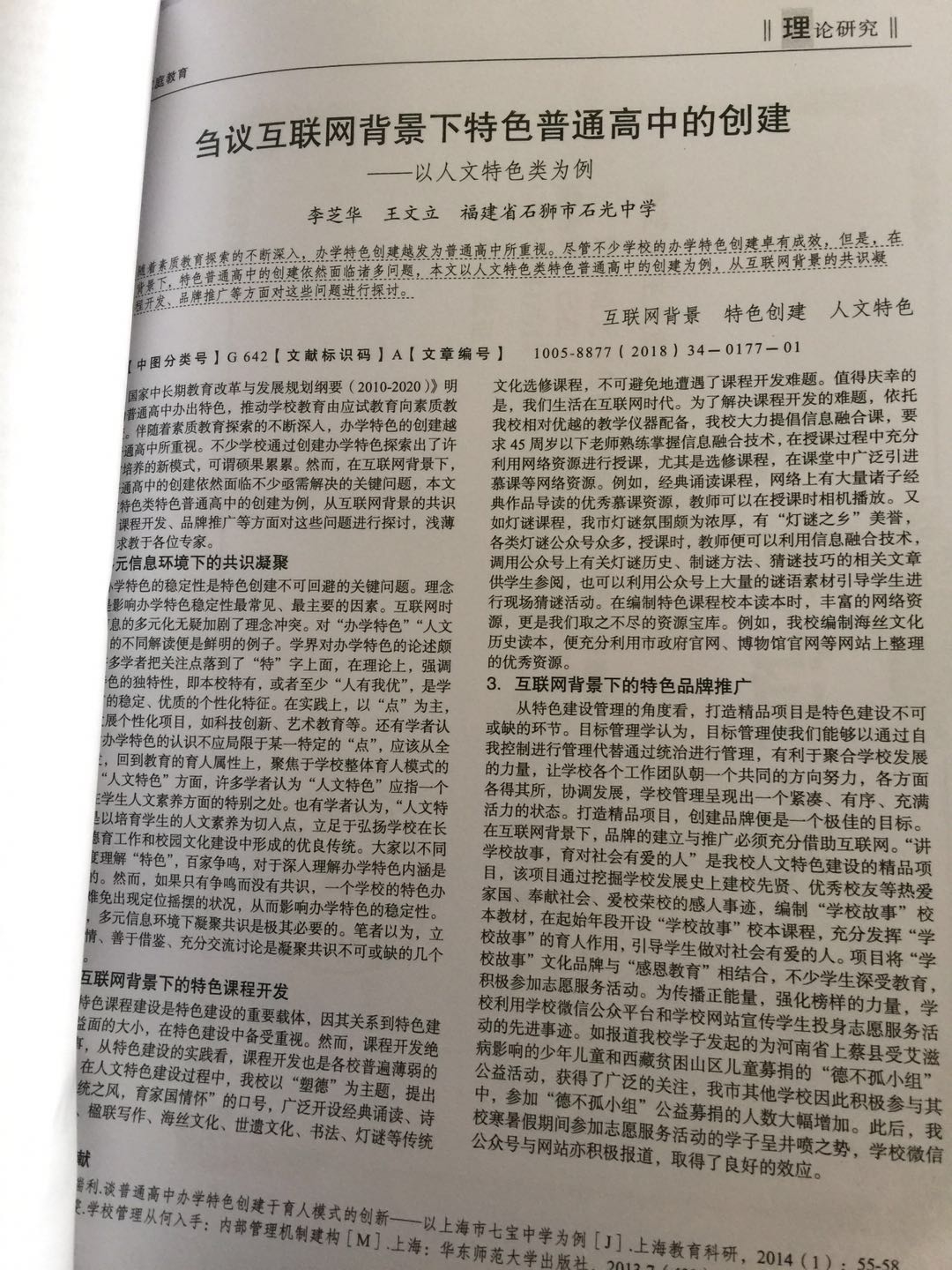 刍议互联网背景下特色普通高中的创建——以人文特色类为例 李芝华 王文立 201812
