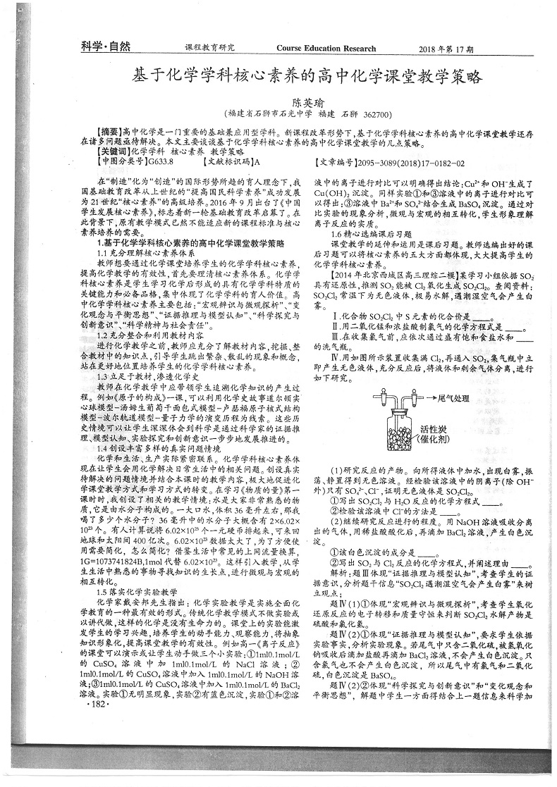 基于化学学科核心素养的高中化学课堂教学策略 陈英瑜 201807