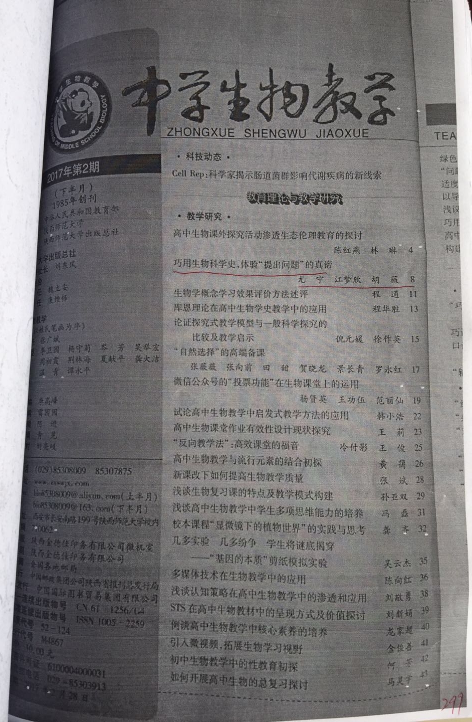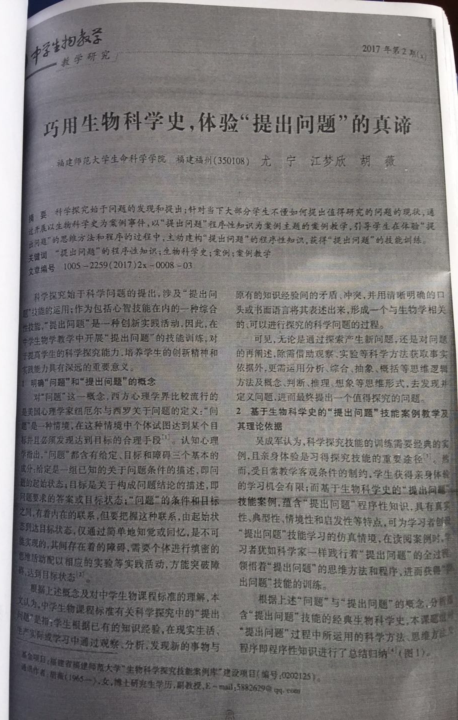 巧用生物科学史,体验”提出问题“的真谛 尤宁 201702