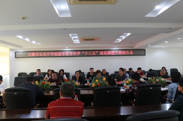 2018年10月24日上午,石光中学教研室在学校经阳楼812室为四个福建省教育科学“十三五”规划2018年度课题立项举行隆重的开题论证会。这四个课题分别是:王若兰副校长主持的《新高考背景下高中生涯规划课程的设计及体系的构建》(FJJKXB18-562)、林建森老师的《提升学生核心素养的高中数学校本课程开发研究》(FJJKXB18-243)、李少妹老师的《互联网+背景下的多学科交叉教学模式研究》(FJJKXB18-293)、许仁培老师的《提高高考文言文复习有效性的研究》(FJJKXB18-469)。