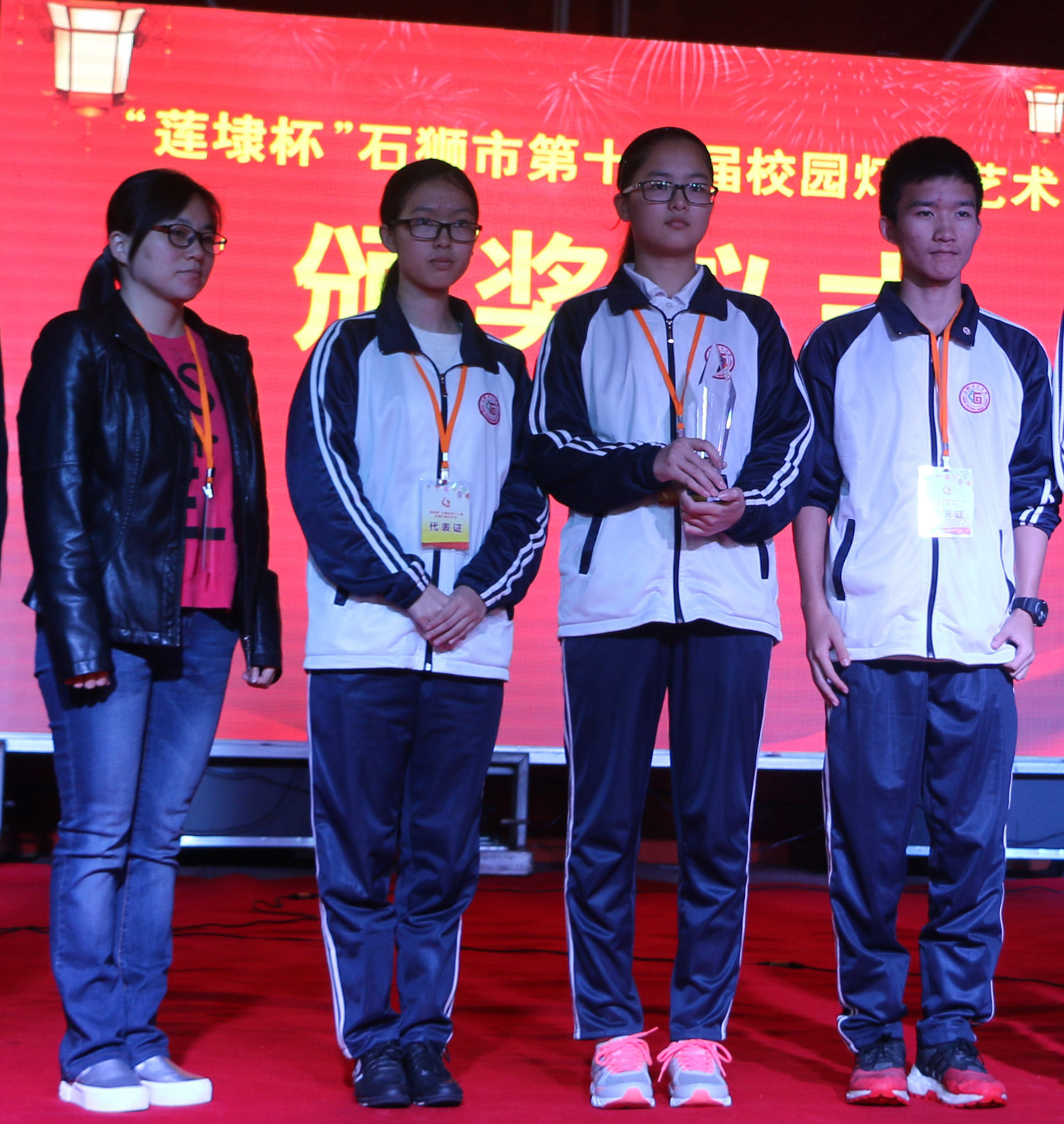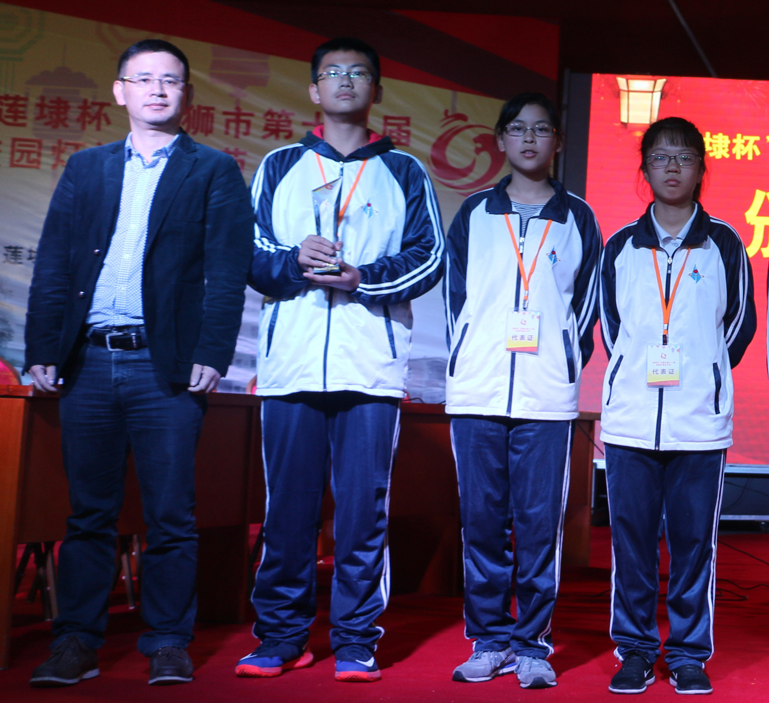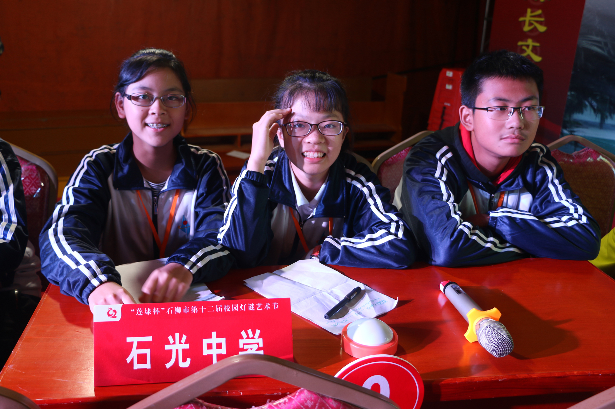 本届校园灯谜艺术节比赛项目分为个人项目及团体项目,经过两天的角逐,石光中学灯谜代表队在教师组个人赛、高校高中组团体赛和初中组团体赛中均获得了电控竞猜一等奖的好成绩。在个人笔猜赛中,林俊兴同学和张雯雯同学分获高校高中男子组和女子组一等奖。薛紫涵同学获得灯谜命题创作赛一等奖。