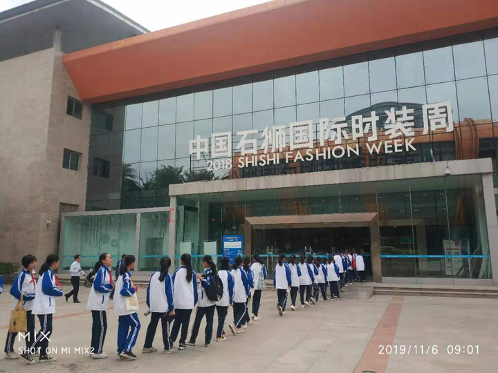 到达石狮服装城广场后,学生在徐旸老师的组织下按照班级顺序,有序地进入场馆。