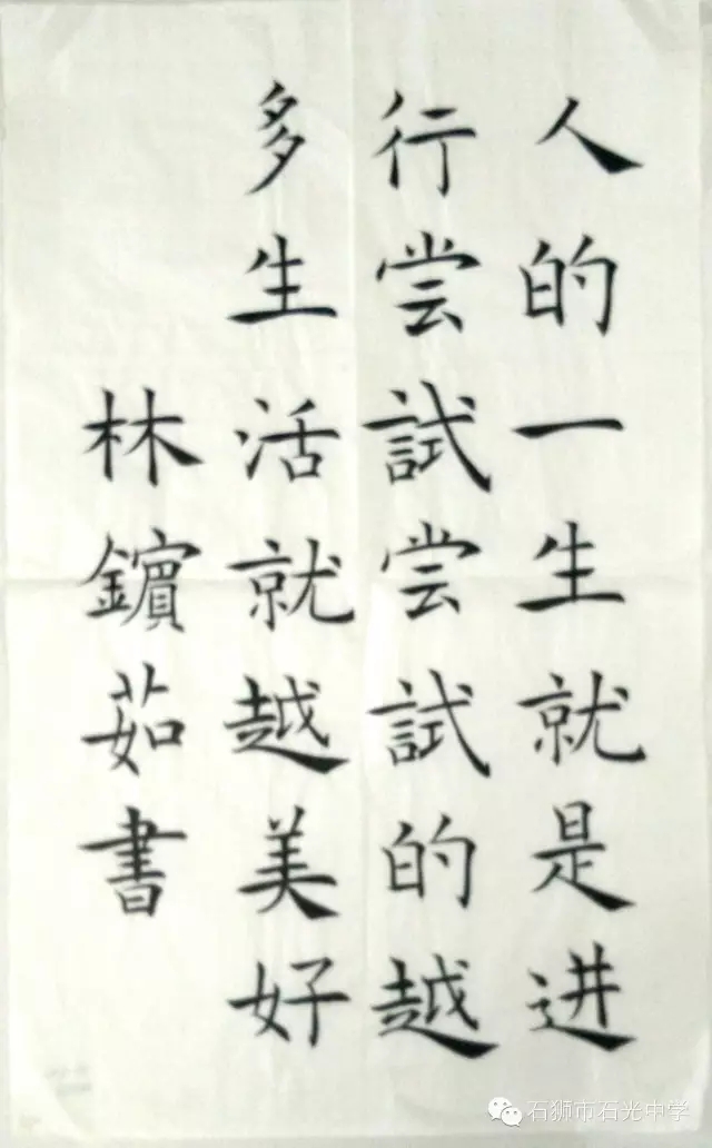 为引导青年学生畅想民族复兴的光明前景,书写中国梦想,弘扬中华传统文化,传承书法艺术,提高学生汉字书写水平,政教处、团委、语文组联合举办2015年“中国梦•书法情”校园书法现场赛。比赛分硬笔、毛笔两组,同学们踊跃参赛,近300名选手参与角逐。参赛作品风格多样,既有娟秀工整的楷书,行云流水的行书,也有古朴超逸的隶书,充分展示了我校学生的非凡才情。颜翠萍等48位同学分获一、二、三等奖。