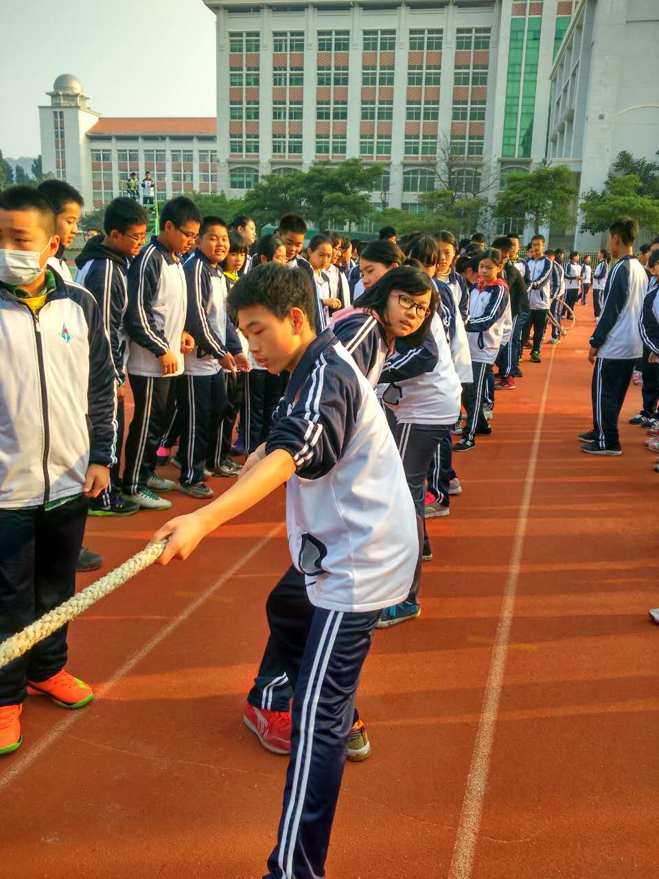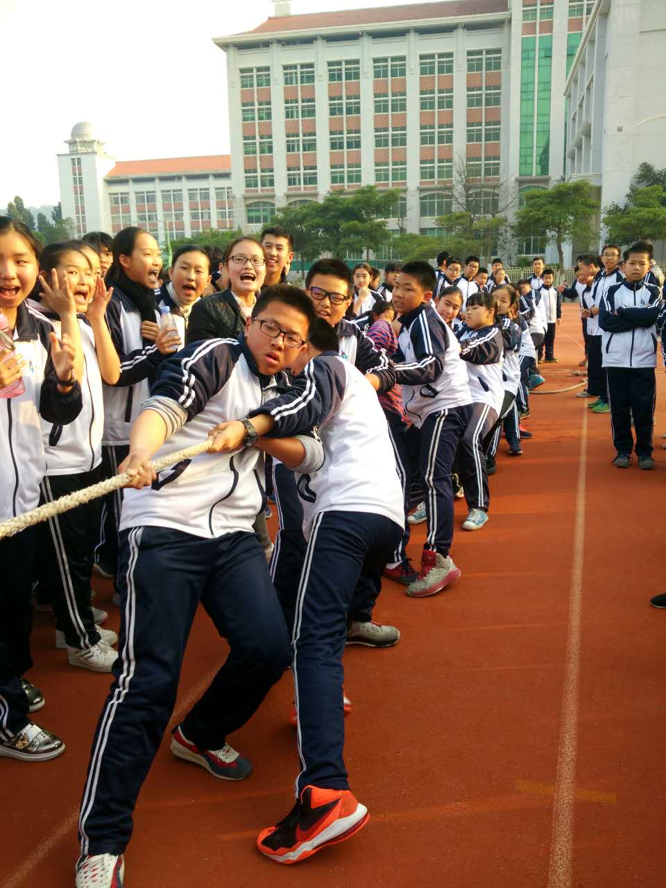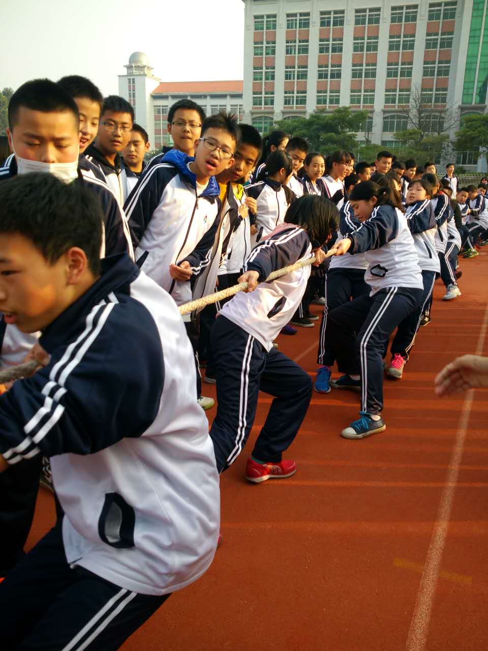 为丰富学生们的课余生活,增强学生团体合作意识,我校初一年段组织开展了拔河比赛。