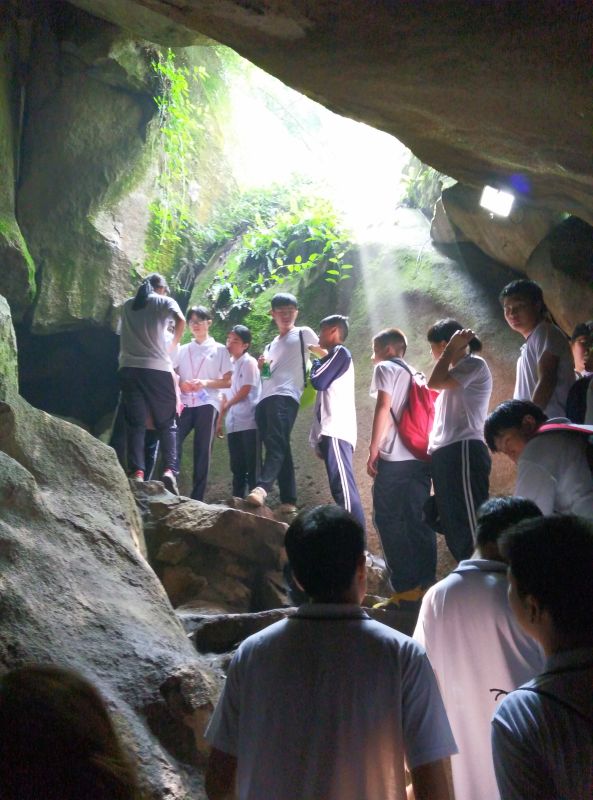 上山钻洞过“一线天”,学生们热情高涨,井然有序。