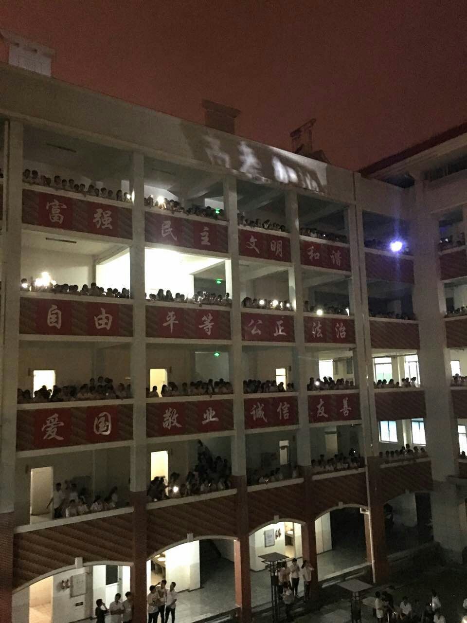 6月3日晚,我校低年级的学弟学妹们齐聚高三年教学楼走廊以及中庭,以排山倒海之势集体为高三同学们呐喊加油。一曲激情澎湃的“爱拼才会赢!”穿破夜空,拉开了“喊楼”的序幕,瞬间点燃了大家热情,转瞬间,响亮的口号此起彼伏,呐喊助威声响彻云霄。“激情澎湃,高考不败;高三加油,高考必胜!”“985 211学长学姐随便挑!”“天王盖地虎,随便985;宝塔镇河妖,最次211 !”一声声呐喊寄托了低年级学生对高三学子诚挚的祝福。高三学子们的激情瞬间被“喊楼”声点燃,收获了感动,释放了压力,也坚定了信心,他们以“学弟学妹们,我们在大学等你们!”等响亮口号回应学弟学妹的真心鼓励。在表达对学弟学妹的衷心感谢同时,也喊出了高三学子的自信。