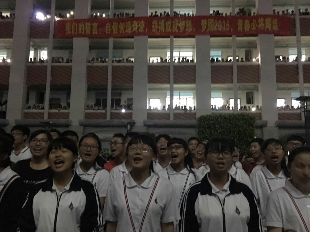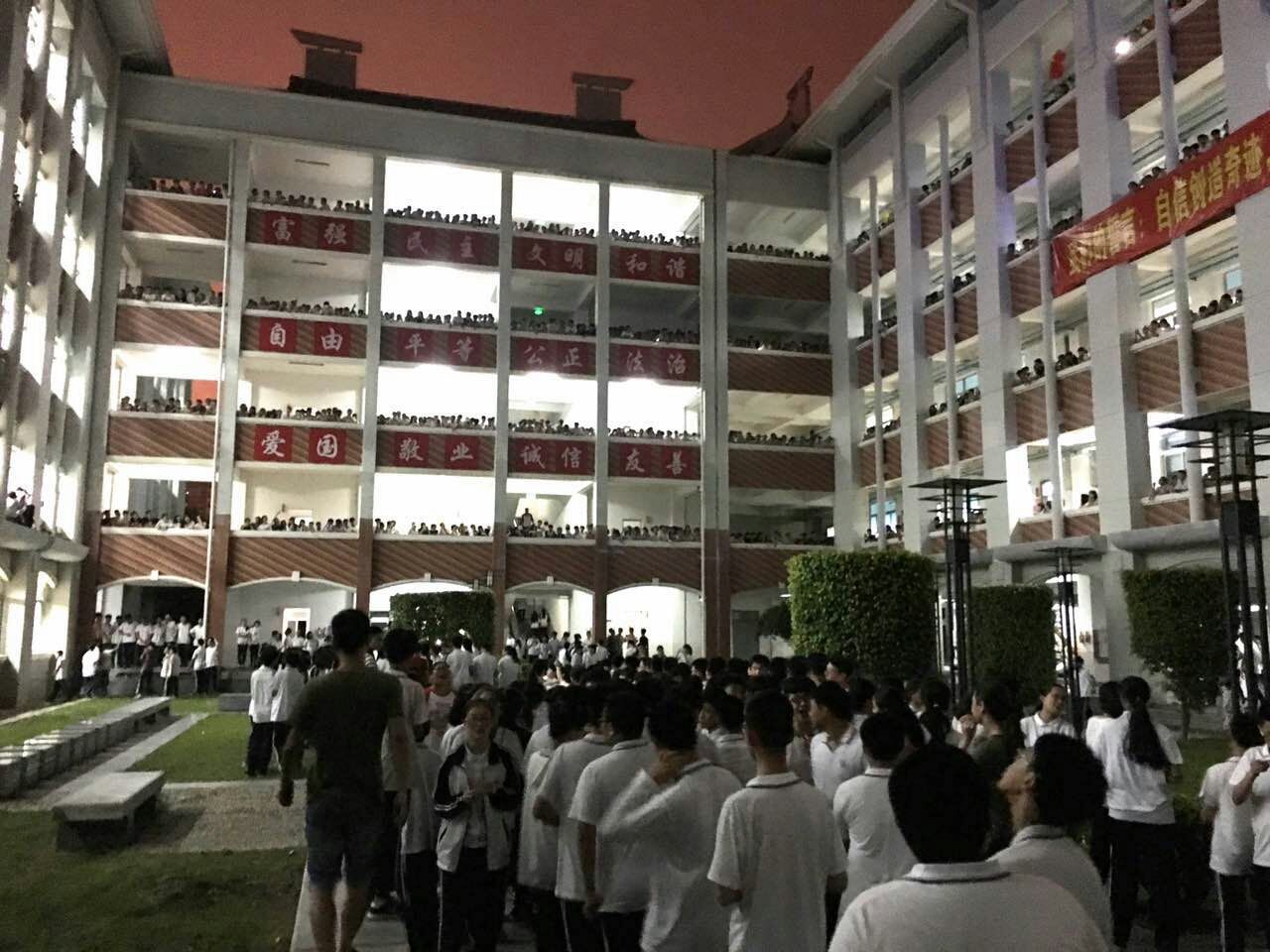 据悉,我校的“喊楼”由来已久,由学生自发组织,得到了政教处、团委和各年段的积极支持。今年的“喊楼”活动由高二四班蔡祺凌,K=1蔡菁怡等同学提前策划,精心准备。“喊楼”活动不仅鼓舞了高三同学们的士气,也增强了全校同学们对学校的归属感 。活动虽然只有二十五分钟,但其影响当历久弥深。