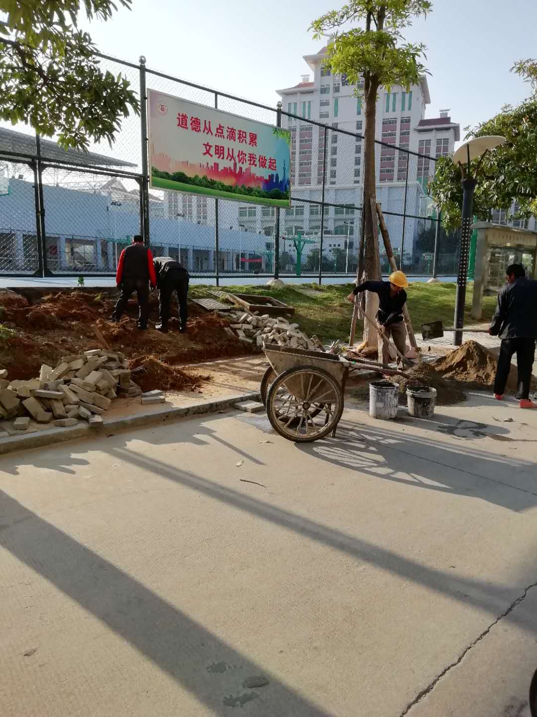 1、为篮球场到校道之间铺设台阶,方便学生进出。