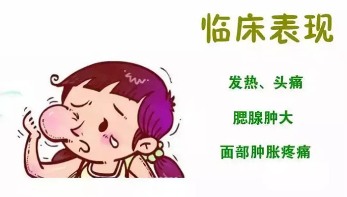 三、流行性腮腺炎:腮腺炎是由腮腺炎病毒引起的急性、全身性感染。患者在腮腺明显肿胀前6~7日至肿胀后9日期间具有传染性。患病初期可有发热、头痛、无力、食欲不振等前驱症状,发病1~2日后出现颧骨弓或耳部疼痛,然后出现唾液腺肿大,通常可见一侧或双侧腮腺肿大。