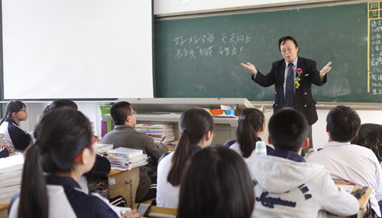 12月18日,石光中学高中1960届校友英国皇家医学院高武图院士借“狮城新风讲堂•乡贤开讲”之机回母校访问,受到了母校师生的热烈欢迎。高院士常年关心母校发展,访问期间,高院士与校领导促膝长谈,共叙学校发展前景;与学生们亲切交流,勉励他们要“好好学习,天天向上“为实现“中国梦”而努力学习。