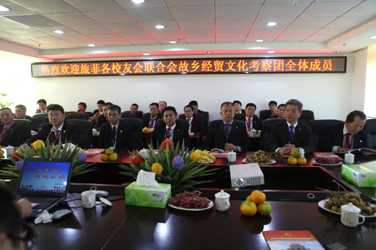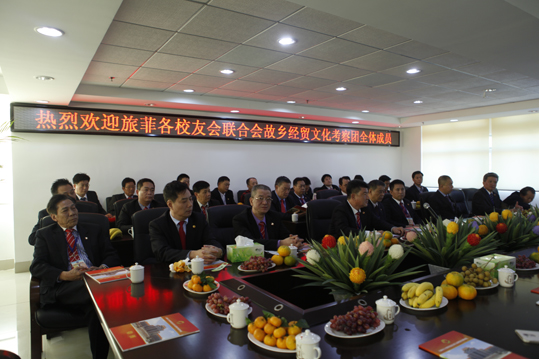 11月26日下午,旅菲各校友会联合会2015故乡经贸文化考察团一行85人在庄清河团长,我校旅菲校友、校友联主席施纯程的带领下莅临我校参观调研。