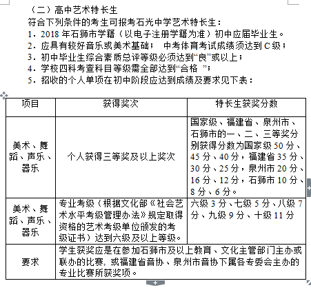 石狮市2018年普通高中特长生初选花名册